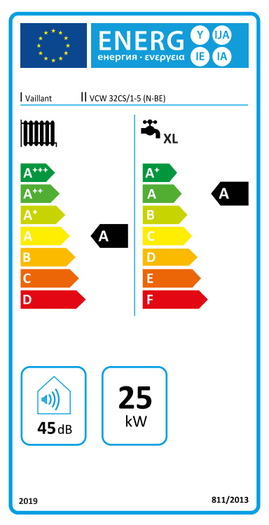 Deze condensatieketel van Vaillant levert 25 kW voor centrale verwarming, en 31,8 kW voor sanitair warm water via doorstromer.